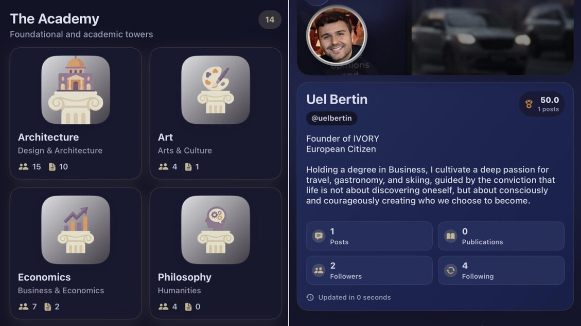 (di Chiara Venuto) “Crediamo che la società prima di Facebook si informasse prima di dire qualcosa. E anche sui primi social, quando le persone si esprimevano, dicevano cose che avevano imparato, non che si erano inventate. Noi vogliamo fare in modo che questa dinamica torni e che la gente ricominci a voler imparare qualcosa di nuovo, a informarsi, prima di interagire sulla nostra piattaforma”. Uel Bertin parla così di Ivory, il nuovo social network nato in Italia da un’idea dell’altro co-fondatore, Adam Nettles, e che sarà aperto a tutti dal 30 aprile.     “Adam è statunitense ma abita in Italia da dieci anni – spiega -. Durante il suo dottorato ha notato che non c’è uno spazio online per gli accademici con un contenuto di informazioni più elevato, verificato e sicuro”. Da qui l’idea di crearlo. Ma a questo punto “perché limitare questo mondo agli accademici, se possiamo creare un social media popolato da contenuti di qualità e in cui se parlo di qualcosa di interessante non c’è qualcuno a torso nudo con molta più visibilità solo perché il suo contenuto diventa virale e il mio no?”.     La piattaforma, perciò, si costruisce su un algoritmo diverso, e parte da premesse differenti. Prevede un tipo di utente verificato, che certifica la propria identità con un documento, e non verificato, che potrà leggere i post altrui senza interagire (così si evitano bot e account falsi). Tra i verificati, ci sarà un’ulteriore suddivisione in base alle competenze: un livello base, uno più avanzato (per chi fornisce un curriculum e partecipa a conversazioni relative al proprio lavoro o un particolare interesse) e uno accademico, per i grandi esperti.     Gli argomenti di conversazione saranno suddivisi – un po’ in stile Reddit – in “Torri d’avorio” (in inglese Ivory Towers, da qui il nome del social), ossia aree tematiche accademiche e di community. In queste ultime “tutti potranno esprimersi e trovare un proprio spazio – spiega Antonio Ucciero, responsabile marketing e media – ottenendo credibilità attraverso le proprie interazioni” e i “voti” assegnati loro dagli altri utenti, in un sistema ispirato a quello della peer review degli articoli scientifici.     Non che le torri d’avorio siano note per essere luoghi sociali, anzi. Il limite di una piattaforma del genere sta nel creare un sistema elitario, escludente. “Non possiamo mentire – dice Bertin – l’app è diversa da altre. Stiamo cercando di essere bold, audaci. Non significa escludere, ma che se vuoi parlare di qualcosa e avere visibilità, devi essere una persona interessata a imparare”. Per lui “ci sono dei momenti nella società dove le cose vanno fatte in modo più incisivo. Senza abbandonare l’aspetto della comunità dove tutti sono benvenuti, anche perché Ivory nasce con valori europei, oltre che in compliance con il Gdpr. Speriamo di diventare ricchi, ma nemmeno la metà della metà dei grandi fondatori di social. Non vogliamo tenere le persone il più possibile davanti allo schermo”. E perciò la palette scelta non è quella che crea ‘dipendenza’ e rilascio di dopamina, a favore di un’interfaccia oro e avorio.     Non mancheranno, comunque, video brevi – chiamati brief – e storie.     “Ivory nasce in un periodo propizio perché la Commissione Ue ha registrato un’iniziativa dei cittadini europei per un social network europeo diverso da quelli dominanti”, ha ricordato Ucciero. “Questo – prosegue – è indicativo di una necessità di maggiore autonomia, anche a seguito di ciò che sta succedendo tra Europa, Iran e Stati Uniti”. La pubblicità sarà targetizzata, ma senza misurazione del tempo trascorso né condivisione con terzi dell’attività degli utenti. “Essendo poi certificati come rivista scientifica – conclude Ucciero -, un altro nostro core business sarà orientato alla diffusione e alla vendita di articoli scientifici”. I paper sottoposti a Ivory saranno inviati a tre revisori competenti nel settore, scelti casualmente tra coloro che non presentano alcun conflitto di interessi.